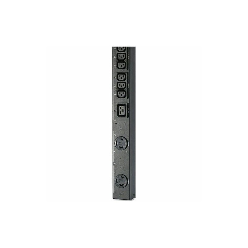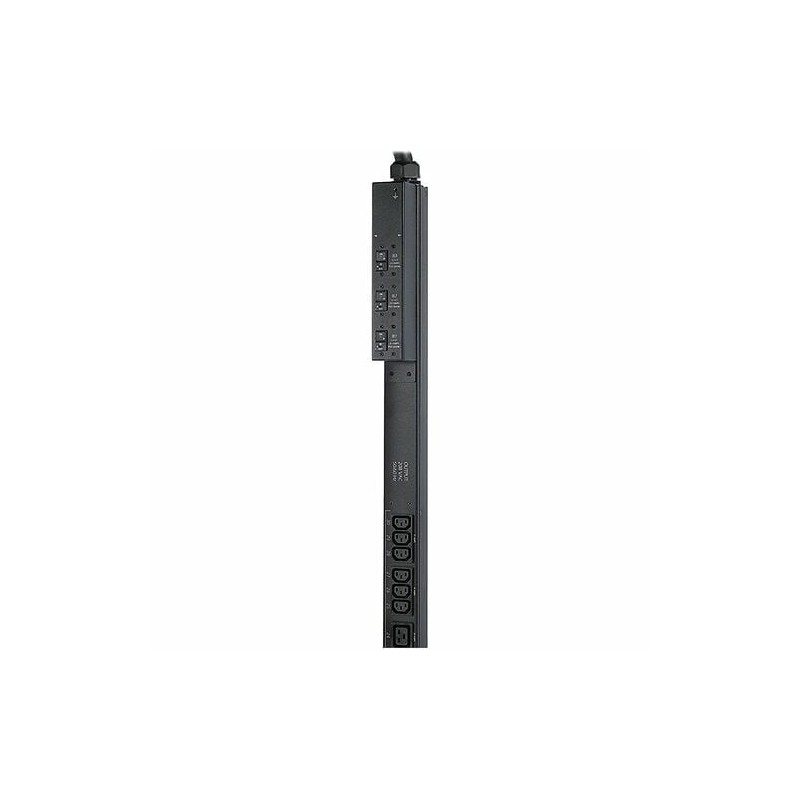 It is a basic rack PDU with a 0U vertical mounting design. It supports a maximum input current of 50A and operates at 208V. The PDU features 24 IEC 60320 C13, 4 IEC 60320 C19, and 2 NEMA L6-30R outlets, providing flexibility for connecting various IT equipment. It includes a 10-foot power cord with a CS8365 plug. The unit is designed for reliable power distribution and includes cord retention brackets, an installation guide, and a toolless mounting kit