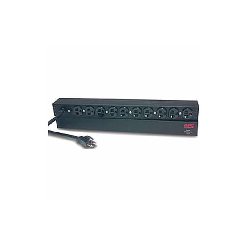 It is a basic rack PDU with a 1U horizontal mounting design. It supports a maximum input current of 20A and operates at 120V. The PDU features 10 NEMA 5-20R outlets, providing ample connections for IT equipment. It includes a 12-foot power cord with a NEMA 5-20P plug. The unit is designed for reliable power distribution and includes rack mounting brackets and an installation guide.