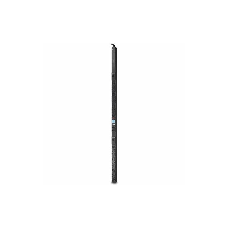 The APC Metered Rack PDU distributes reliable power within a rack through a single input and multiple output receptacles The AP8841 offers real-time remote monitoring of connected loads and user-defined alarms to help prevent circuit overloads that can cause accidental power loss to critical equipment The PDU can operate in a maximum ambient air temperature of up to 60°C (140°F) at full load The Network Management Card provides enhanced cybersecurity with secured interfaces and modified password policy The rack PDU integrates with EcoStruxure IT through a Network Management Card and can be accessed and configured via Web, SNMP, and Command Line Interface. User-interactive LCD interface details current, real power, voltage, and energy measurements for local user access. Embedded log memory with historical reporting enables users to meter power usage, optimize energy usage, and plan for capacity The PDU's locking IEC outlets, when used with locking power cords reduce the probability of accidentally disconnecting cords and dropping loads The rack PDU supports daisy-chaining of up to 4 PDUs on a single IP address An environmental monitoring port is available for external temperature/humidity monitoring (sensor sold separately, model AP9335T or AP9335TH) The rack PDU comes with a standard two-year warranty Enables a quick recovery from overload events and breakers are ultra low profile. Packaging Includes PDU, Installation guide, Rack mounting brackets, Safety guide, Serial configuration cable