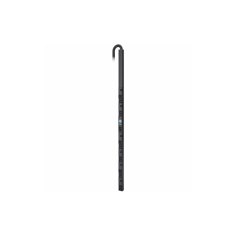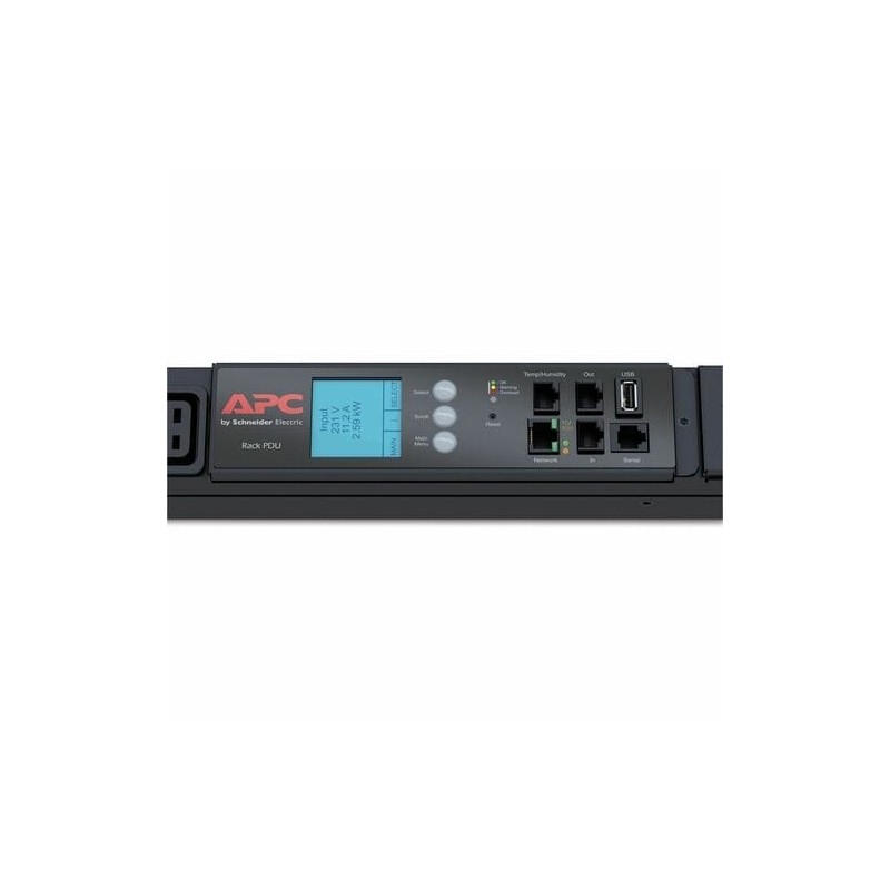 APC Metered Rack PDUs distribute reliable rack power distribution via a single input with multiple output receptacles. Real-time remote monitoring and user-defined alarms help prevent potential circuit overloads that can cause accidental power loss to critical equipment. Easily access, configure, and manage this metered PDU from remote locations. A network management interface provides standards-based management via Web, SNMP, and Command Line Interface. This Metered PDU from APC provides (6) IEC 60320 C13, (12) IEC 60320 C19 outlets to supply power to rack equipment. Locking IEC receptacles enable locking power cord compatibility to reduce the probability of accidentally disconnecting cords and dropping loads. Volts, amps, real power (kW), and energy (kWh) data is provided to support energy management. An embedded log memory to reports historic metered data. Display details current, power, and voltage measurements and offers local user access. An environmental monitoring port for external temperature/humidity monitoring is available (sensor sold separatelymodel AP9335T or AP9335TH). Easily mount this vertical PDU in racks or enclosures. It occupies zero U of valuable rack space, which allows space for more equipment in the rack. This vertical PDU does not require additional tools to mount into APC NetShelter Enclosures. Enables a quick recovery from overload events and breakers are ultra low profile. Packaging Includes PDU, Installation guide, Rack mounting brackets, Safety guide, Serial configuration cable.