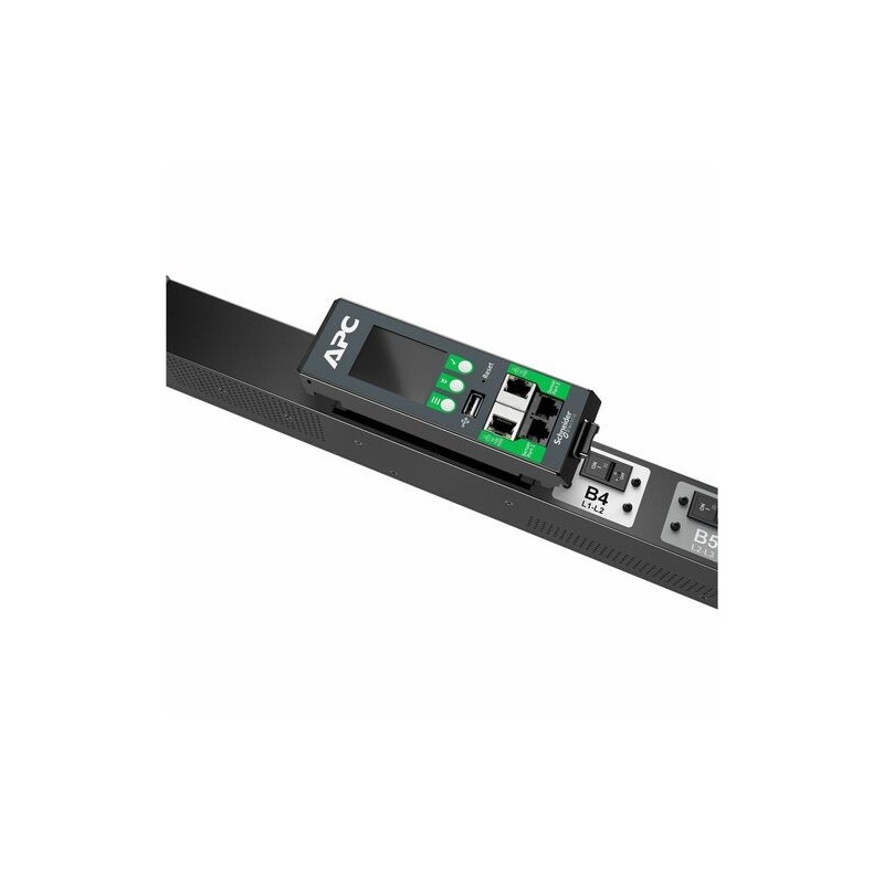 APC NetShelter Rack PDU Advanced provide reliable power distribution to IT Equipment within server and/or networking racks. Switched outlets to turn outlets on or off remotely. PDU level power metering via remote access and local display for power visibility and notification of potential overload. 4-in-1 combination outlets which can be used as either C13, C19, C15, or C21 outlets provide unparalleled deployment flexibility. Maximum outlet density with 42 outlets in a 2.2" wide form factor. Outlets on the PDUs are color coded and/or labeled by breaker and input phase on 3 phase models to simplify deployment. Provides an alternating phase design whereby each of the 3 phases are organized into small outlet groups which alternate from top to bottom of the PDU to facilitate better power cord management and promote better load balancing. Power Sharing allows PDUs cascaded together via 2 ethernet ports enable an Network Management Card to continue functioning in the event of an AC power loss. No interruption in Network communication, sensors operation, and alarm traps. Live Swap Network Management Card (NMC) which can be replaced without powering down the PDU or connected devices to minimize downtime in the unlikely event of an NMC power event. Rated and approved to operate up to 60C (140F) at full load ensures reliability and availability even in today's high density deployments. Gigabit ethernet to enhance and standardize network connectivity across all assets in the data center. A second ethernet port (10/100) is available to allow cascading to other PDUs, connect to a 2nd private network, or provide network redundancy. 1% metering accuracy for the peace of mind to use NetShelter Rack PDU Advanced to bill based on power usage. In addition, the higher level of accuracy ensures the most precise measures for capacity planning and threshold alarm monitoring. Two environmental sensor ports allow for optional sensors (sold separately) to be connected. For data center deployments across multiple regions, these PDUs are both UL and CE rated providing one PDU that can be used globally to simplify and standardize deployment.
